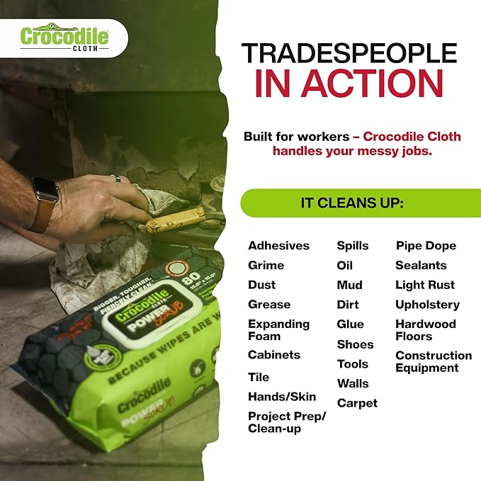 - MANUFACTURED TOUGH IN THE USA – Crocodile Cloth Power Scrub Wipes are Manufactured in the USA with Quality Ingredients Sourced Worldwide. No more wimpy wipes—just pro-grade performance every time.
