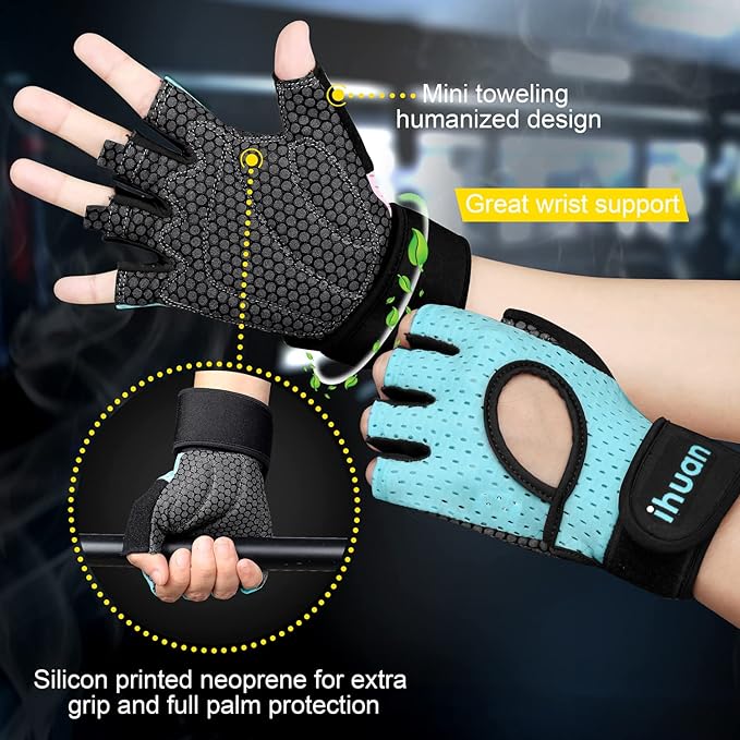 ihuan Breathable Weight Lifting Workout Gym Gloves: Fingerless Exercise Wrist Support | Enhance Palm Protection | Extra Grip for Fitness |Training | Rowing | Pull-ups