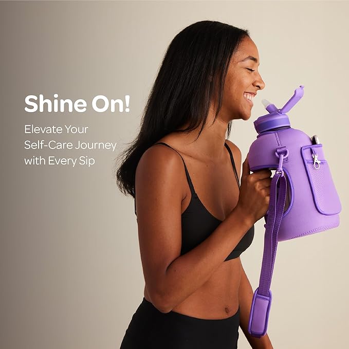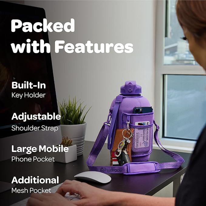 - 👍SMART DESIGN Equipped with an adjustable shoulder strap, detachable travel carry strap, wide mouth, spill proof flip top lid, and a convenient silicon spout, your stylish Hydracy water bottle with handle has everything you wanted and more! The no sweat thermal sleeve comes with two pockets to hold even your largest phone and all your cards as well as an integrated keychains to store your keys securely.