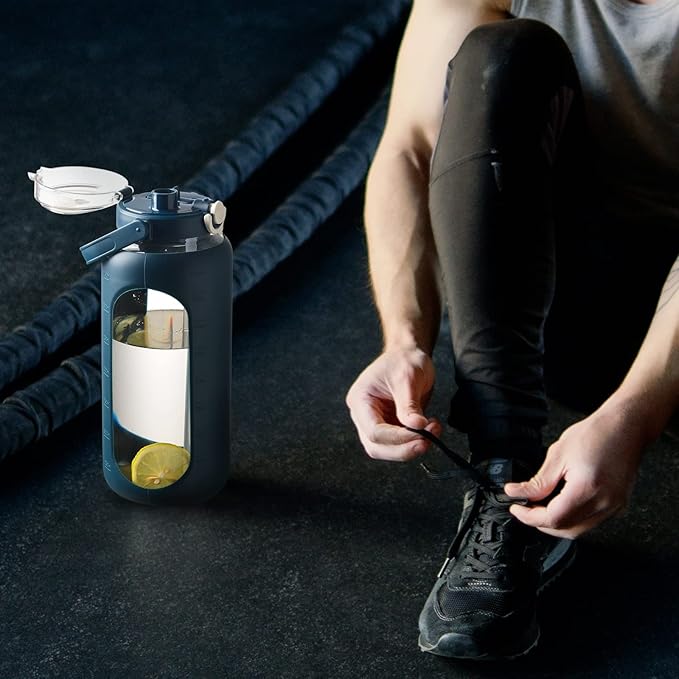 - Durable: The silicone sleeve covers most of the half gallon water bottle for protection. Not only does it keep your drinks cold for hours, but also makes this motivated glass water bottle more durable. The wide mouth of this huge glass water bottle makes it easier to refill large pieces of ice cubes and fruit, and with help of time and oz markers, you will easily track your daily water intake and drink more water throughout the day.
