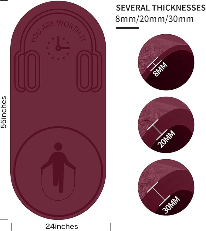 8/20/30mm Jump Rope Mat Fitness Exercise Mat Durable, Non-Slip, Workout Mats with Jump Rope & Carrying Bag for Home Gym Flooring (55"x 24")