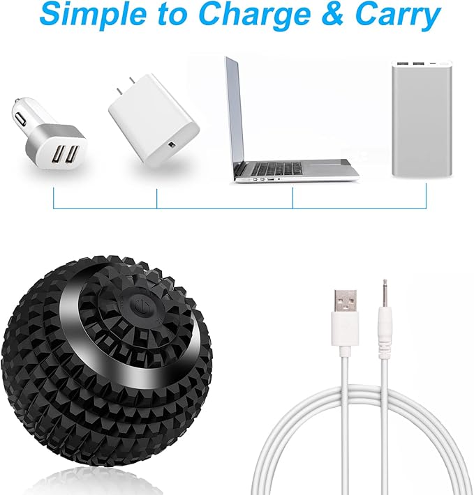 - Compact and Rechargeable: This therapy ball features a built-in 2500mAh lithium battery, weighing just 0.9370 lbs (approx. 0.425 kg) with a diameter of 3.94 inches (approx. 10 cm), making it highly portable. Carry this trigger point massage ball with you to enjoy relaxation anytime, anywhere! Supports charging functionality, fully recharging in just 4 hours.