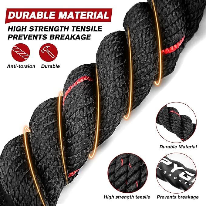 - 【Anti-Friction Protective Sleeve】Any product that produces friction will have a certain life cycle, so we added an protective sleeve, put it in the middle of the workout battle rope. This will make reduce the friction of the ground on the rope, increase the abrasion resistance of jumping rope for workout and extend its service life.
