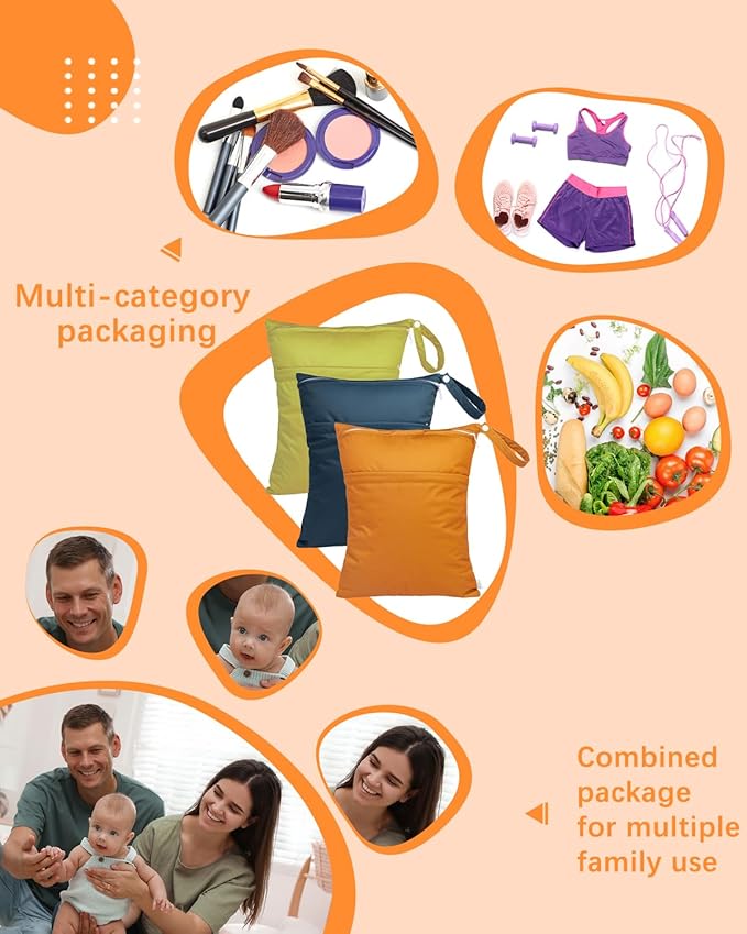 - Multi-Function: You will receive 3 pack wet bags, which size is They are perfect for preserving cloth diapers and other baby products, and they can also be used as swimsuit bags, bikini bags, bathing suit bags, travel bags, gym bags, storage bags, cosmetic bags, handbags, wash bags, organizer bags, breast pump parts bags, even as picnic bags. They are ideal for baby shower gift, get yours today!