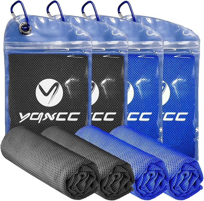 YQXCC Cooling Towels | 4 Pack 47"x12" | Ice Cool for Neck | Microfiber Soft Breathable Chilly | for Yoga, Sports, Golf, Gym, Camping, Running, Fitness, Workout & More Activities