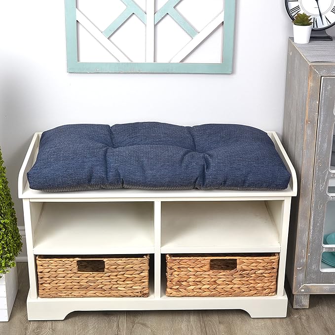 Klear Vu The Gripper Omega Non-Slip Tufted Bench Cushion for Indoor Furniture, Entryway Storage, Bay Window, Corner Nook or Piano Seat, 30 Inches, 03 Indigo
