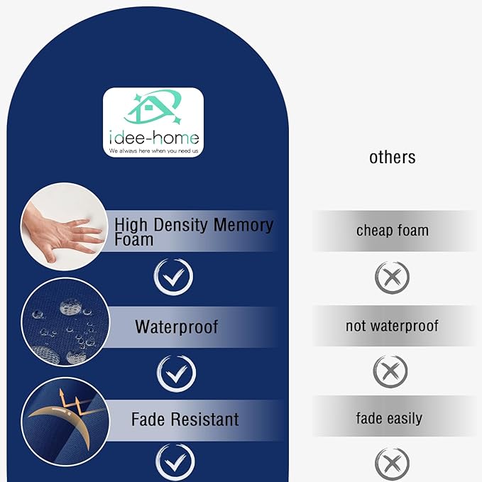 idee-home Outdoor Bench Cushion Waterproof, Bench Cushions for Outdoor Furniture, Patio Porch Swing Replacement Seat Pad with Ties for Garden Backyard, 59 x 18 Inch Navy Blue