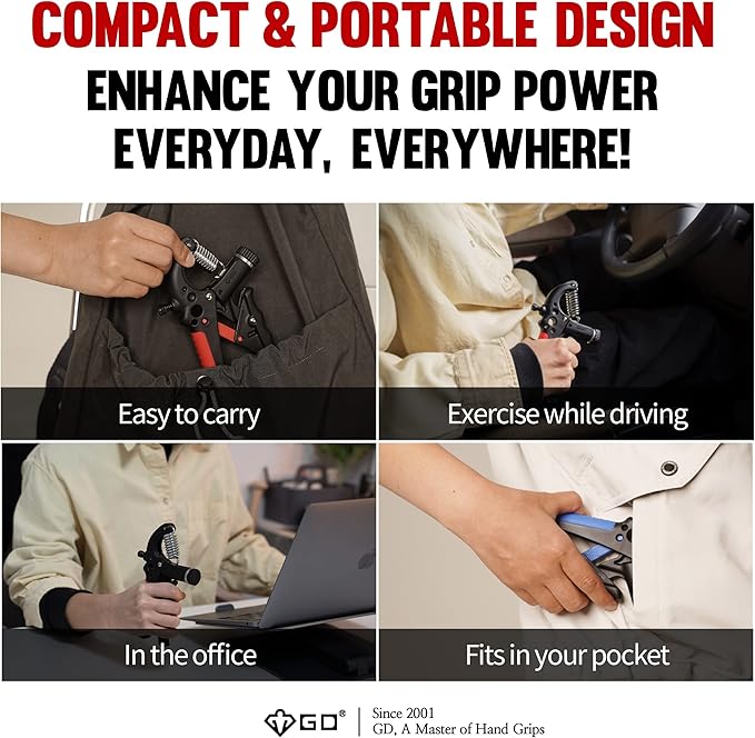 GD Grip2 Hand Grip Strengthener (Grip Strength Trainer) Adjustable Gripper (22~77lbs) Forearm and Wrist Exerciser Strengthener for grip Strength