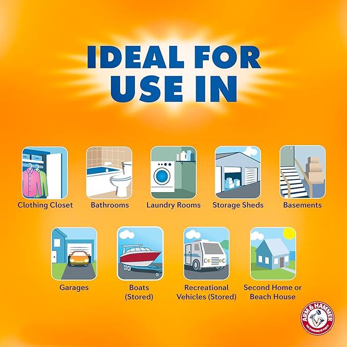 - ATTRACTS AND TRAPS EXCESS MOISTURE: Use Arm & Hammer Moisture Absorber and Odor Eliminator Tubs to attract and trap excess moisture from damp spaces.