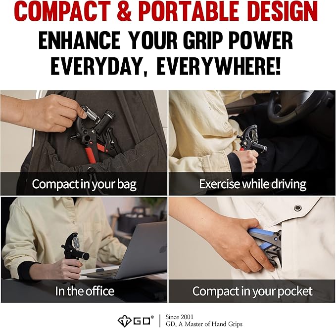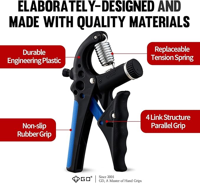- [Dual Function for Strength and Gap Adjustment! Customizable Hand Gripper] GD Parallel Grip allows you to adjust both the resistance intensity and the handle gap with ease. You can adjust the resistance from 22 to 77 pounds, and the handle gap can be customized from 3.2 to 2.5 inches. Whether you're a child with weaker grip strength, a senior, or an average adult male, anyone can tailor their hand strength exercise to match their hand size and strength.
