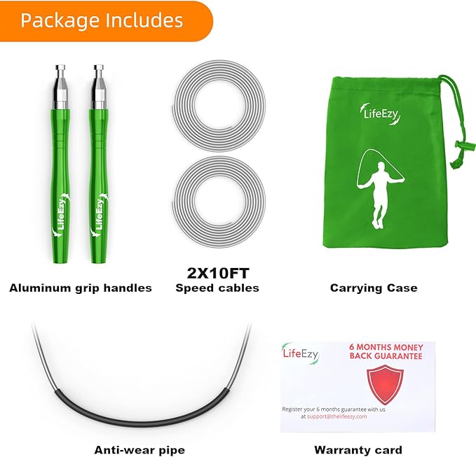 - Faster and Smoother - Premium grade 360-degree ball bearings? You are right. Our newest speed jump rope is built-in with a quality DOUBLE-BEARING SYSTEM, it ensures stable and fast rotation, tangle-free, which brings you smooth jump exercises.