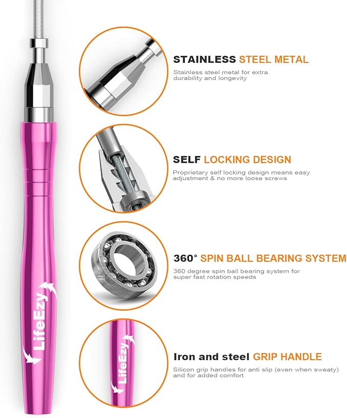 - Faster and Smoother - Premium grade 360-degree ball bearings? You are right. Our newest speed jump rope built-in with high-quality DOUBLE-BEARING SYSTEM, it ensures stable and fast rotation, tangle-free, which brings you smooth jump exercises.