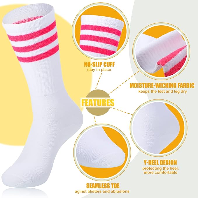 - Package Include: you will receive 4 pieces of 80s headbands, 4 pairs of neon sweat wristbands and 4 pairs of striped 80s socks in 4 different colors, sufficient for gymnastics wristbands gymnastics headband and daily outfit