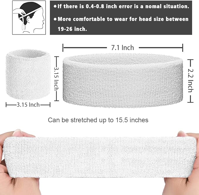- Suitable Size: The normal size of headband is 7.1 x 2.1 inch, and the wristband is 3.15 x 3.15 inch (L x W), they both have good elasticity and can stretch to larger size, suitable for most children, teenagers and adults' head and wrist; these elastic athletic sweatbands are washable by machine or hands, not easy to deform and fade, suitable for long term wear
