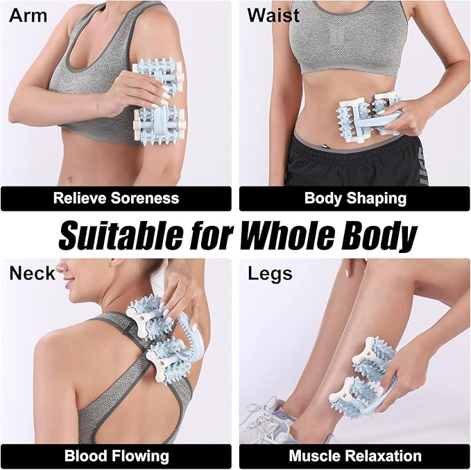 - Full-Body Coverage: With 20 rotating wheels, the cellulite roller covers more area for faster relief. The high-density arrangement ensures no muscle group is missed, from large back muscles to small neck knots. Experience a full-body treatment