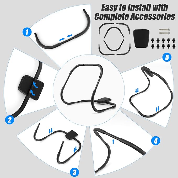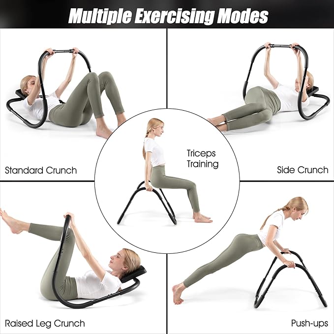 - 【Premium Material & Solid Structure】This AB cruncher is constructed with high quality steel frame, which features great sturdiness and excellent lifespan. With triangular structure, the sit up assistant holds up to 220lbs. Moreover, the firm connections between each part ensure overall stability safety.