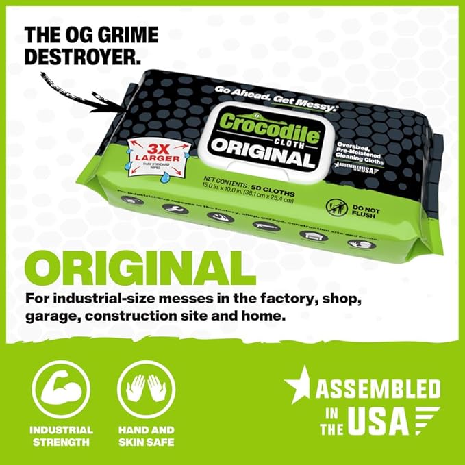 - BUILT STRONG, MANUFACTURED IN THE USA – Crocodile Cloth wipes are over 4X stronger than standard cleaning wipes. Tear-resistant, oversized, and engineered for real work—not wimpy cleanup. Proudly Manufactured in the USA with Quality Ingredients Sourced Worldwide.