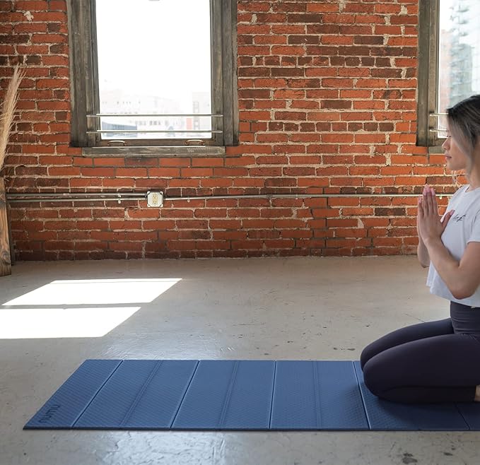 Numu Foldable Yoga Mat with Yoga Carrying Strap - Nonslip, Lightweight, and Portable 1/4” Inch Thick Workout Exercise Mat - Perfect for Easy Storage and Travel