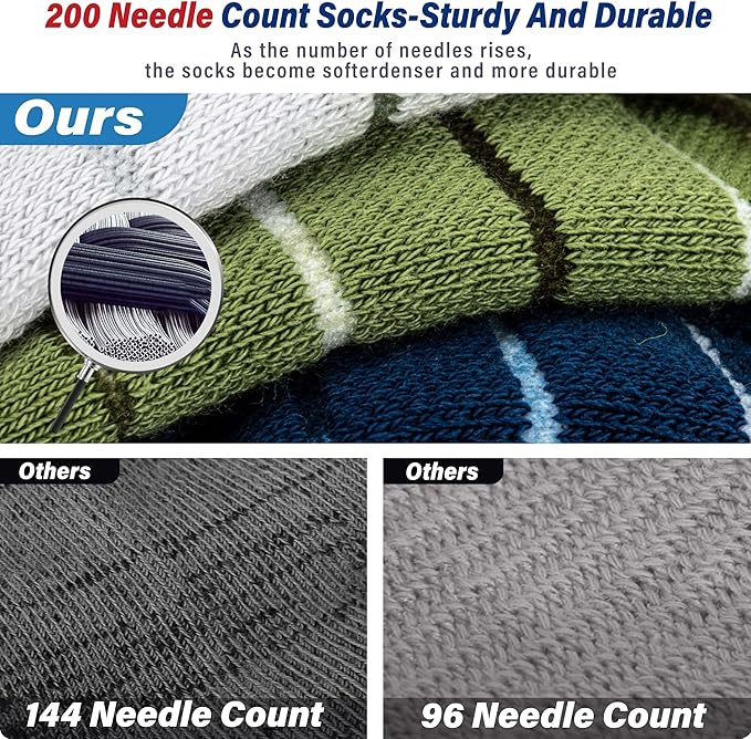 - High Performance Socks - Our 200 needle knit socks achieve the highest levels of quality and durability. While others use 96, 144 needles, we use 200 needles technology to benefit you with denser and lighter socks which makes it the best running socks, gym socks, golf socks and workout socks for men and women athletes