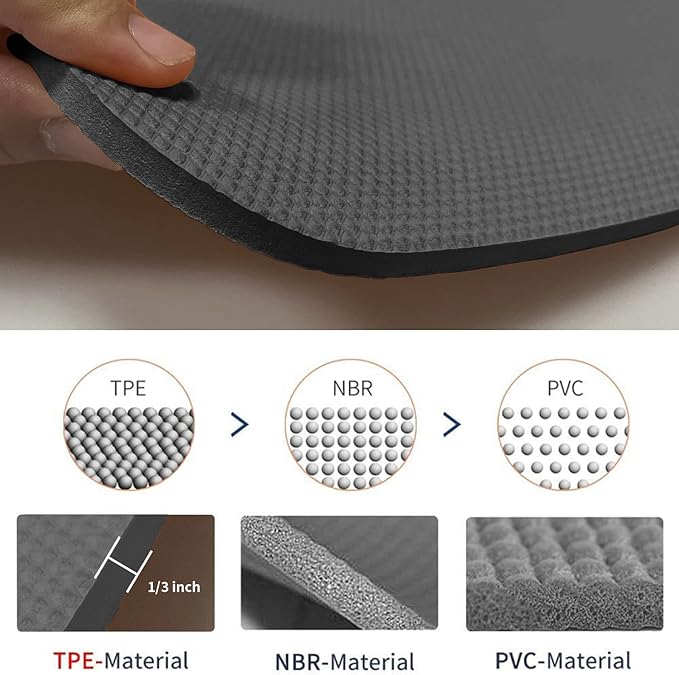 - Eco-friendly TPE Material: More expensive but worth it. TPE is the latest technological improvement to the traditional yoga mats. Our mats are made of SGS certified TPE material which is non-slip, Easy-to-clean odor-less and excellent in cushioning, unlike those cheap & traditional . They are truly eco-friendly, healthy.