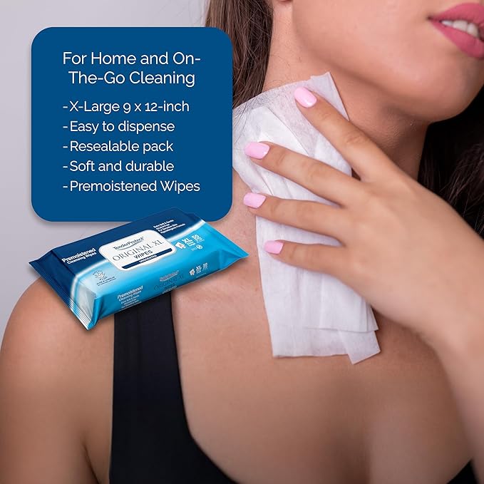 TenderProtect® Original XL Premium Adult Wipes (50/Pk), Extra-Large 9"x12" Wet Wipes with Aloe, Wash Cloths for Babies & Elderly, Incontinence, Hands & Body Cleaning
