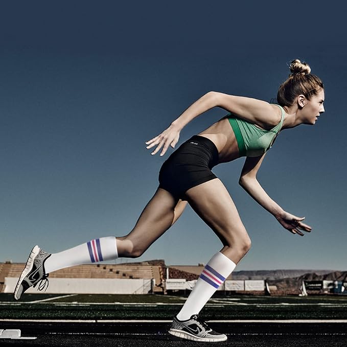 - Compression socks for men and women promote blood circulation by applying a certain amount of pressure to the legs. It reduces pain and swelling when you stand or run for long periods of time.
