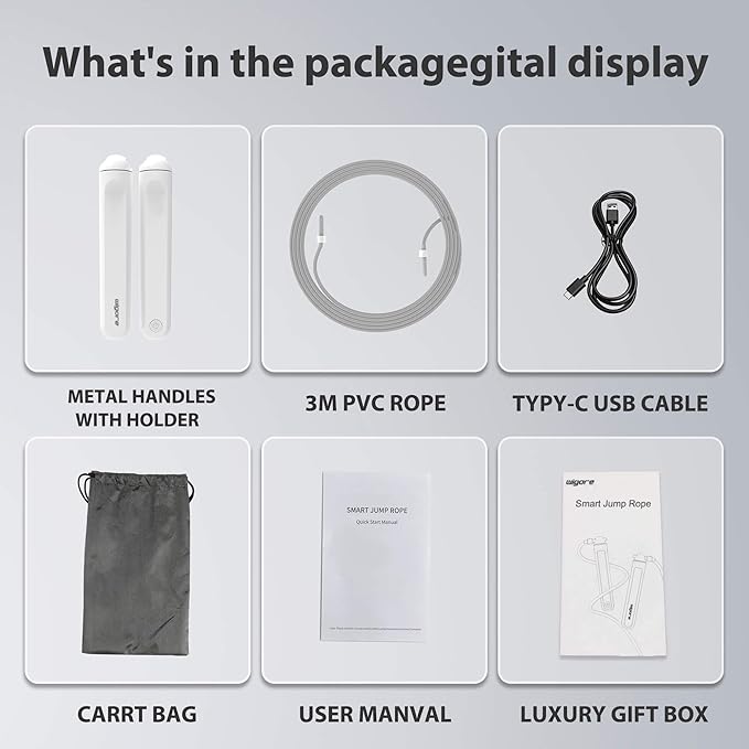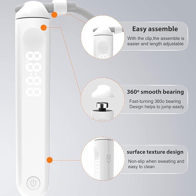 - ACCURATE TRACKING-The counting is also accurate enough for daily exercises,the built-in 3-axis Hall sensor and precise algorithm ensure that the number of valid skipping ropes is calculated only after the bearing rotates 360 degrees.Each of your jumps is accurately recorded