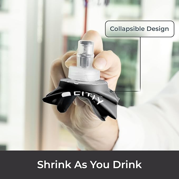 - HYDRATION ON THE MOVE: Our collapsible running soft flask is a compact and eco-friendly way to stay hydrated on the move! The soft water bottle is the perfect hydration tool for active individuals. Our soft water bottles for runners shrink as you drink, taking up minimal space and won’t slosh around, making it perfect for running, hiking, skiing or any rigorous activity.