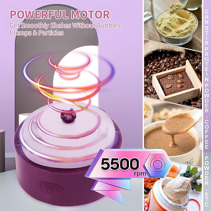 - 【Efficient Mixing at Your Fingertips】Featuring two operating modes, a single button press initiates a 30-second automatic blending, while a double click extends it to 100 seconds. The high-speed motor of the shaker bottle effortlessly blends protein powder into a smooth liquid without any clumps. Suitable for various water-soluble powders such as protein powder, fiber supplements, and oat powder, eliminating the need for manual shaking. NOTE: NOT SUITABLE FOR FRUITS OR ICE