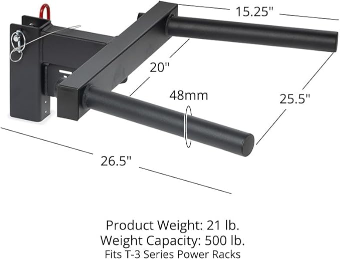Titan Fitness Y-Dip Bar Fits T-3 Series Power Racks, Rack Mounted Dip Attachment, 500 LB Capacity, Dip Bar Station for Tricep Dips, Bodyweight Training, Calisthenics, Squat Rack