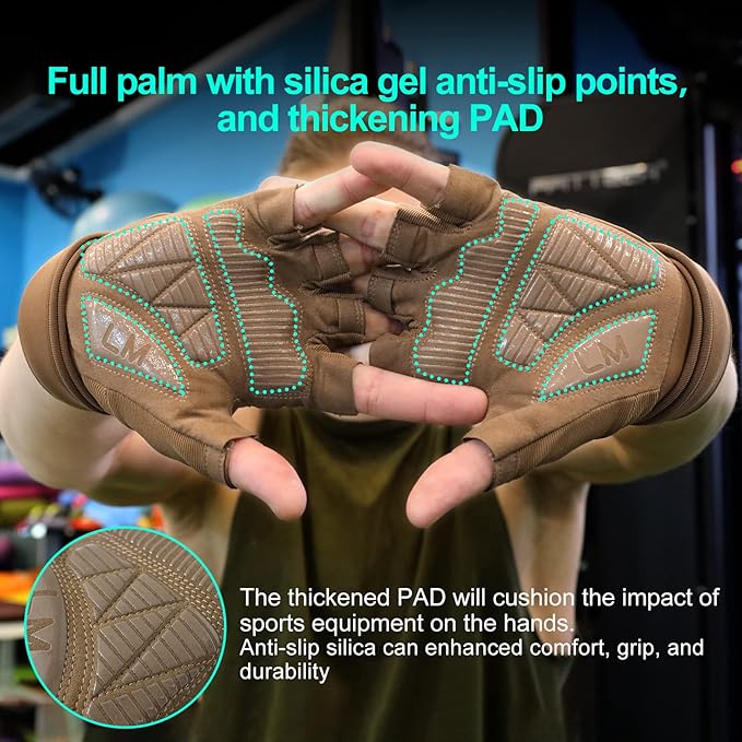 Workout Gloves for Men and Women Gym Weight Lifting Padded Gloves with Wrist Wrap Support, Full Palm Protection & Silicone Grip, Cross Training, Fitness, Pull-up