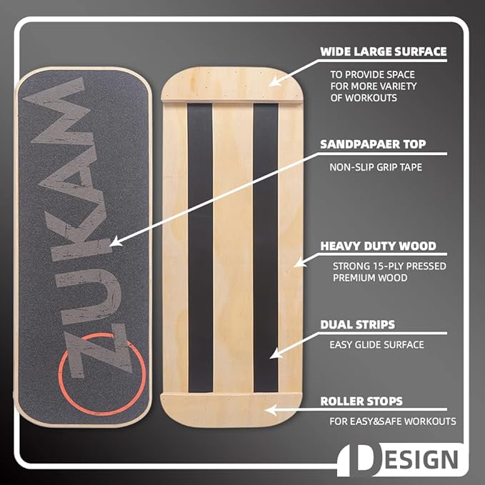 - [What’s included] - The Zukam Balance Board comes with board, roller and workout guide. The board measures 75x28cm , and the roller has a diameter of 11cm and a length of 41.8cm.