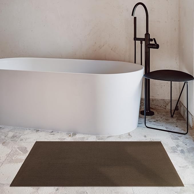 Cotton Paradise 100% Cotton Non Slip Bath Mats for Bathroom, 17x24 inch Soft Absorbent Quick Dry Machine Washable Floor Bath Mat, Brown