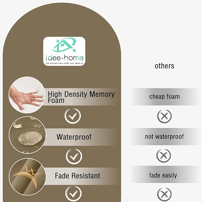 idee-home Outdoor Bench Cushion Waterproof, Bench Cushions for Outdoor Furniture, Patio Porch Swing Replacement Seat Pad with Ties for Garden Backyard, 59 x 18 Inch