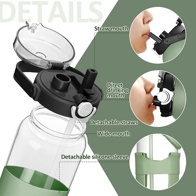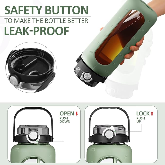 - Lockable & Leakproof Flip Lid: The handy, lockable flip lid prevents leaks and can be opened with one hand for those times when you’re on the move and your arms are full. Our leak-proof glass water bottle with straw makes your drinking dribble-free. The straw spout gives you a comfortable and quick drinking experience and this glass water bottles with time marker comes with 2 straws and the carrying handle on top makes it easy to tote around town.