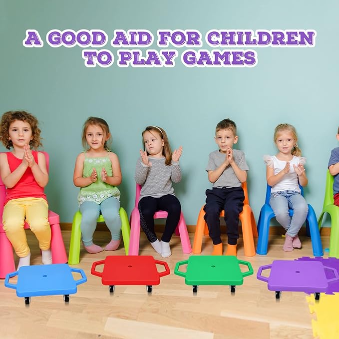 - Scooter Board Set: you will receive 4 pieces of scooter boards with handles, including green, red, blue, purple colors, each scooter board measures about 11.22 inches, ideal for kids to play at home or at school
