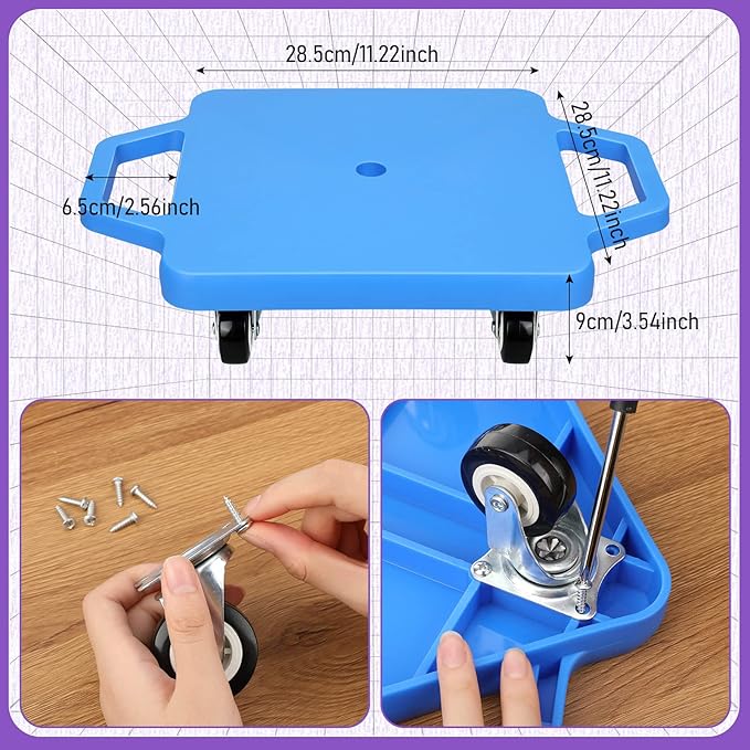 - Sturdy and Safe: our gym scooter boards are made of quality plastic material that plastic wheels won't scratch floors; The wide base and handles keep scooter board can be applied while sitting safety