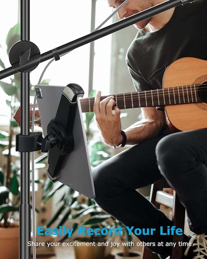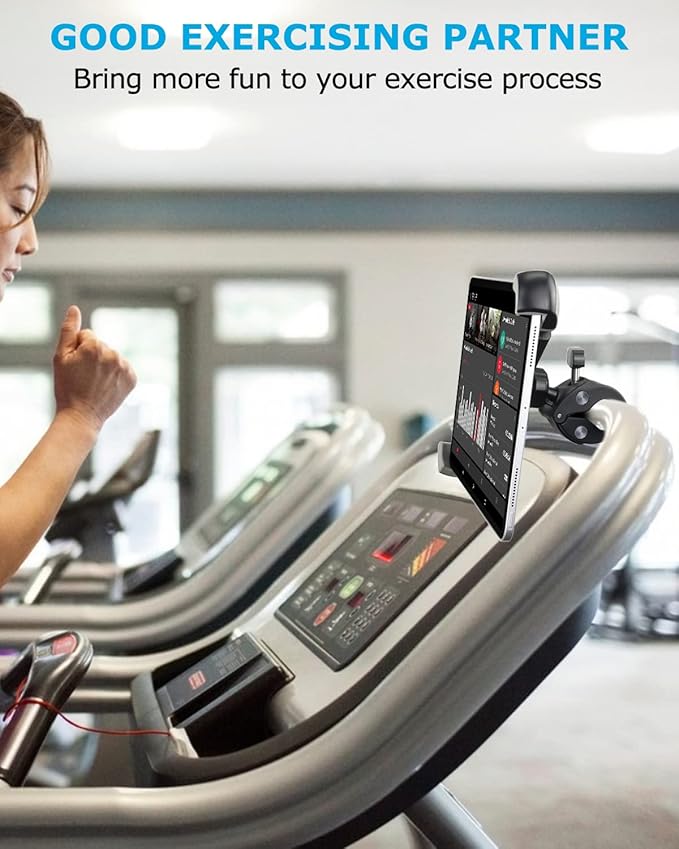 - 【Fits Most Tubular Handlebars/ Poles】Universal iPad holder has wide range of applications with adjustable diameter :⌀0.55-1.5". Can hold a tablet secure & sturdy on the pole ,like spin bike, treadmill, elliptical, stationary bicycle or other fitness equipment with handlebar , microphone music stand, tube tripod stand, stroller, shopping cart.