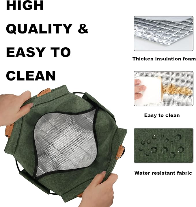 - ❤KEEP FRESH & WARM: This insulated lunch bag is made of water-resistant leakproof oxford cloth, easy clean food safe aluminum foil inner lining, and padded with thicken EPE foam will keep your food cold or thermal for 4-6 hours. Tips: Putting ice packs into the bag could keep cold for longer time.