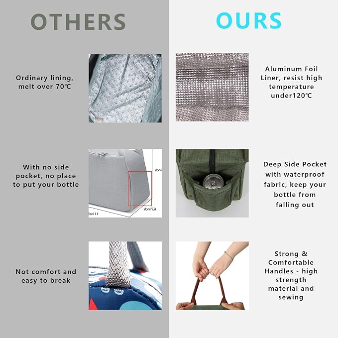 - ❤LONG-LASTING: Strong linen handles and heavy duty nylon connect by dense stitching can provide long-lasting against daily activities. Feel free to carry your food with this lunch bag and enjoy your lunch!
