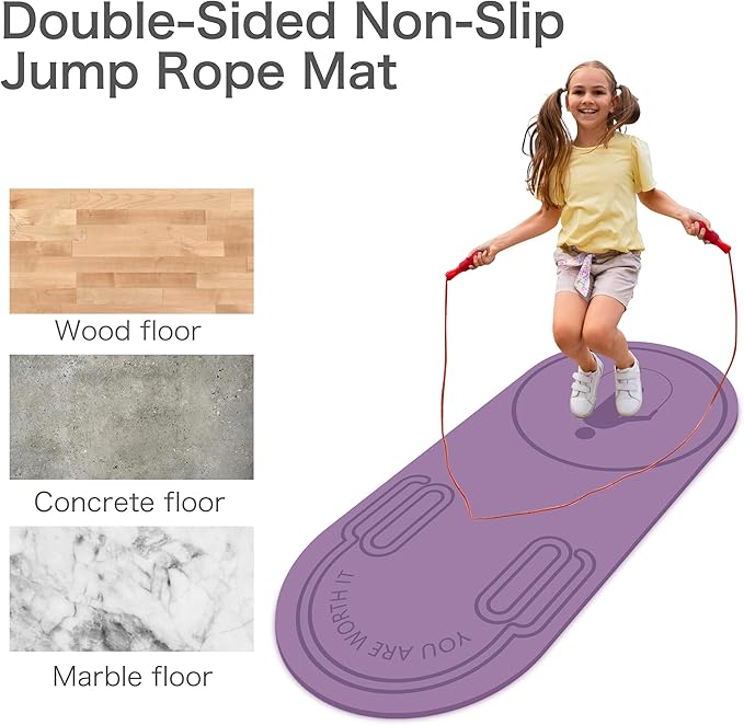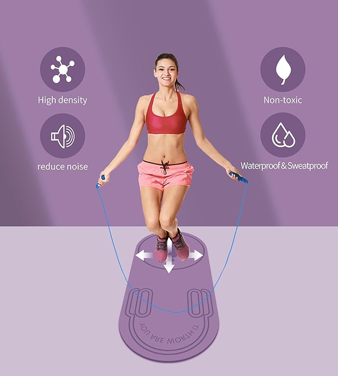 - Shock Absorption of Indoor Jumping: The specially designed jumping rope mat has the effect of noise attenuation, anti-slip and shock absorption. The high quality closed hole design enhances the shock absorption function, reduces noise, and effectively avoids disturbing the downstairs neighbors. It is the best partner for indoor jumping rope for adults & children.