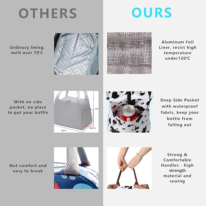 - ❤KEEP FRESH & WARM: This insulated lunch bag is made of water-resistant leakproof oxford cloth, easy clean food safe aluminum foil inner lining, and padded with thicken EPE foam will keep your food cold or thermal for 4-6 hours. Tips: Putting ice packs into the bag could keep cold for longer time.