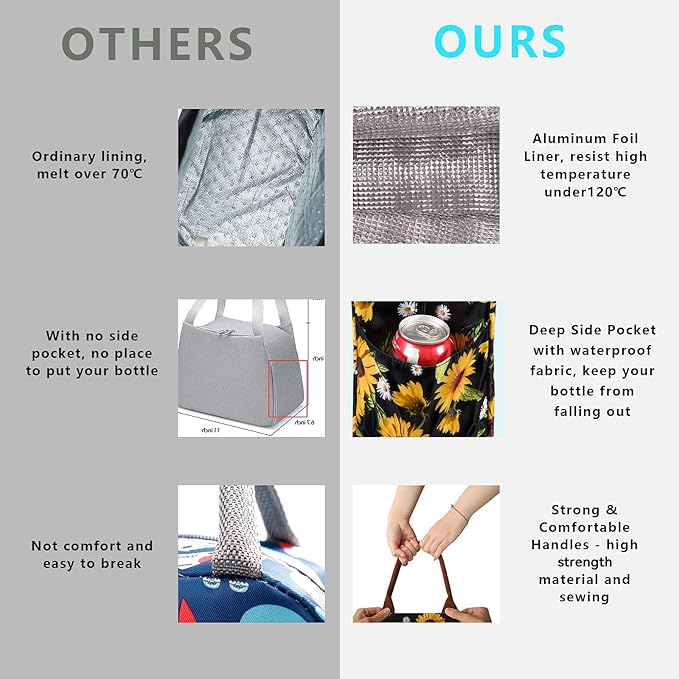 - ❤LONG-LASTING: Strong linen handles and heavy duty nylon connect by dense stitching can provide long-lasting against daily activities. Feel free to carry your food with this lunch bag and enjoy your lunch!