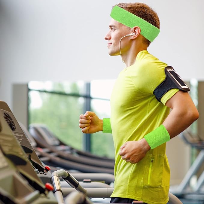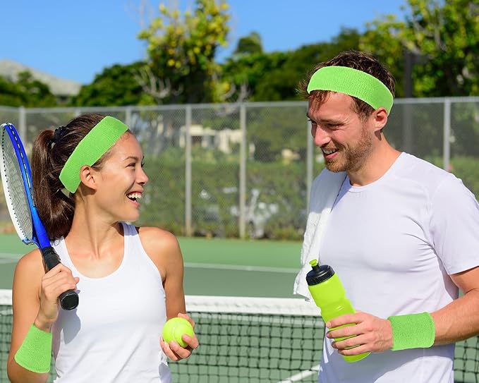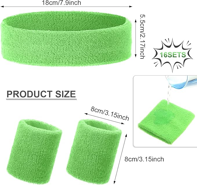 - Package Include: you will receive 16 pieces of 80s headbands and 16 pairs of tennis wrist sweatbands in green, totally 48 pieces, 16 sets, sufficient for your daily outfit and sports wearing; Or you can share them with your surrounding people