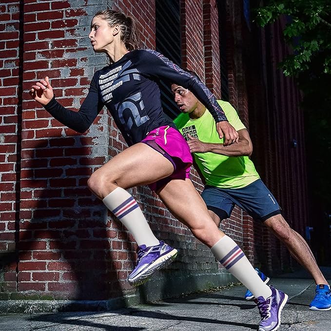 • Compression socks for men and women promote blood circulation by applying a certain amount of pressure to the legs. It reduces pain and swelling when you stand or run for long periods of time.