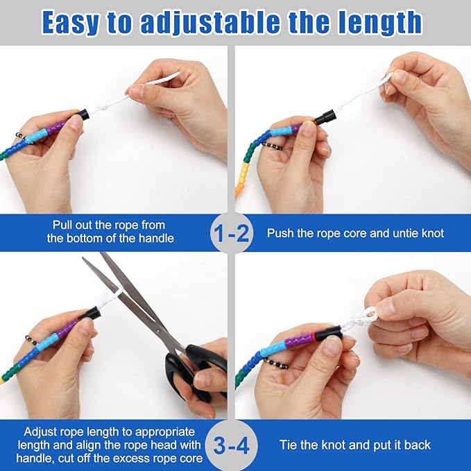 - 💖Easily Adjust to Any Length - There is a knot inside the handle. Untie the knot inside the handle, slip the desired number of beads off, tighten the new knot to shorten the rope to the desired length.