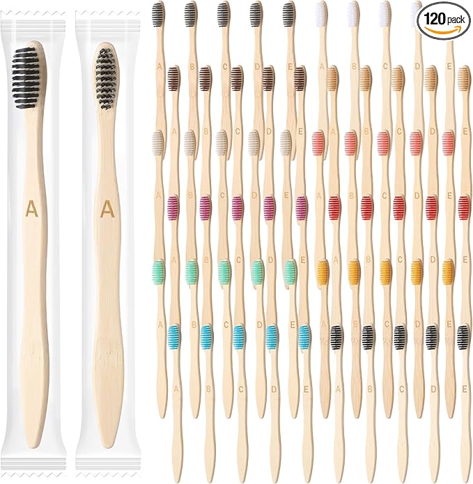 - Sufficient to Use: there are 120 pieces of bamboo toothbrushes in the package, the soft bristles come in 12 different colors, including white, yellow, red, purple, gray, blue, black, transparent, pink, green, beige and coffee, 10 pieces for each color; The letters A-E are printed on the toothbrush handle, the same color has 2 toothbrushes with the same letter