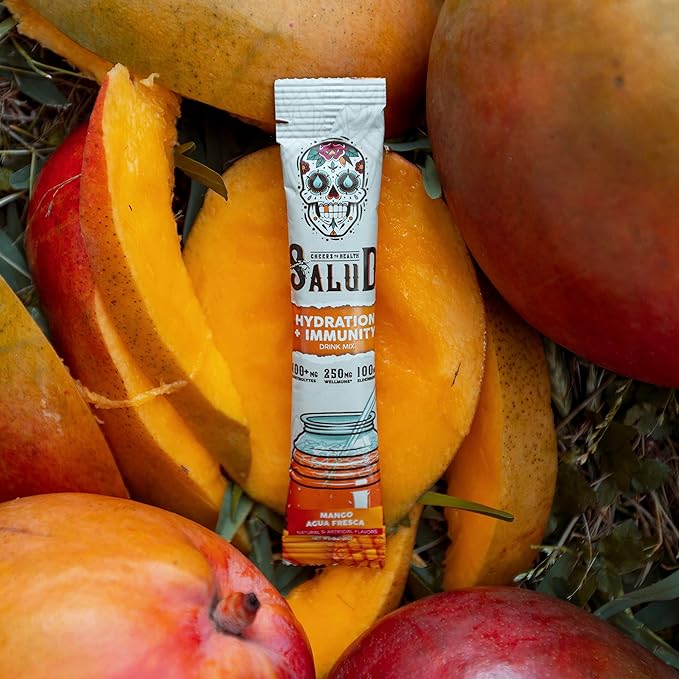 Salud 2-in-1 Hydration Packets + Immunity Electrolytes Powder, Mango - Agua Fresca Drink Mix, Elderberry, Dairy & Soy Free, Non-GMO, Gluten Free, Vegan, Low Calorie, 1g Sugar (15 Servings)