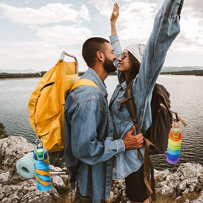 - Attach to Backpack: feature metal clips, our foldable water bottles can be firmly fixed on the backpack, school bag, fitness bag without falling, so that you can release your hands to do other things, ideal supplies for gym, commuting, work, outdoor sports