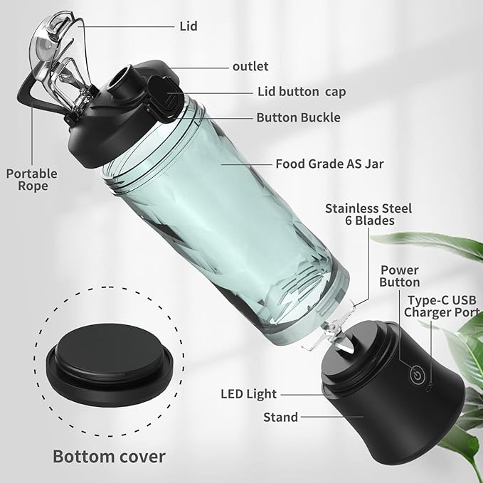 - MAGNETIC INDUCTION TECHNOLOGY: This personal blender is made with magnetic induction technology, the blades will only rotate when the bottle and base are properly tightened.